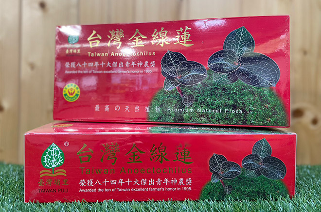 品 名:金線蓮茶 (木盒/30包入) 主要原料:金線蓮、魚腥草 容 量:30包入/每小包2.5g±0.1g 保存期限:2年 食用方法:每小包請用熱開水500cc沖泡約三分鐘即可飲用 產 地:臺灣 埔里