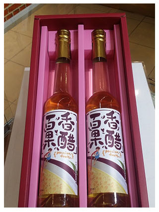 品 名:百香果醋 成 份:糯米醋.砂糖.百香果汁 內容量:375毫升/瓶*2