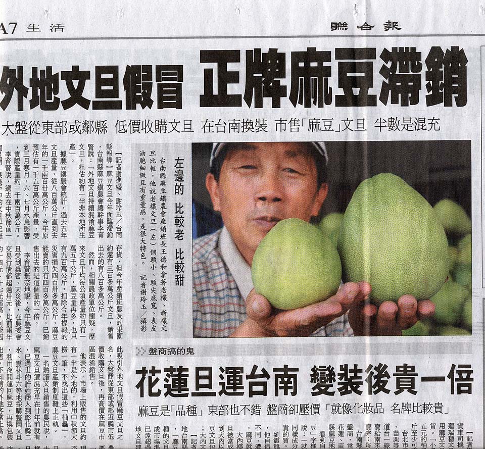 • 德和(園主):王德和栽種麻豆文旦是始自其先曾祖父,相延至今進而其子傳承已第六代,他的祖父到其先父時代栽種的麻豆文旦與麻豆紅文旦,曾在日本昭和時期列為《日本皇室》的貢品,顯見其王家文旦口碑,絕不虛傳。王德和曾獲頒神農獎,並獲選十大傑出農民,可稱是台灣傳統農產自創品牌的最佳典範。消費者認此品牌自可享受到物超所值的正宗麻豆文旦--肉質甜美、皮薄多汁、口感細緻。